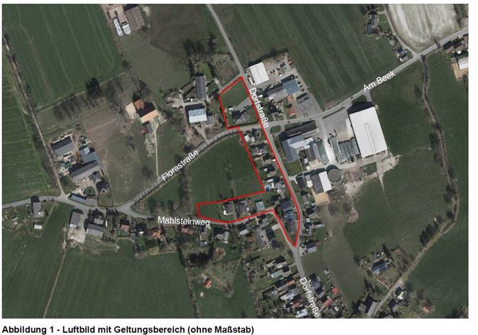 - im Südwesten durch landwirtschaftliche Flächen, sowie durch Wohn- und Gewerbegrundstücke,